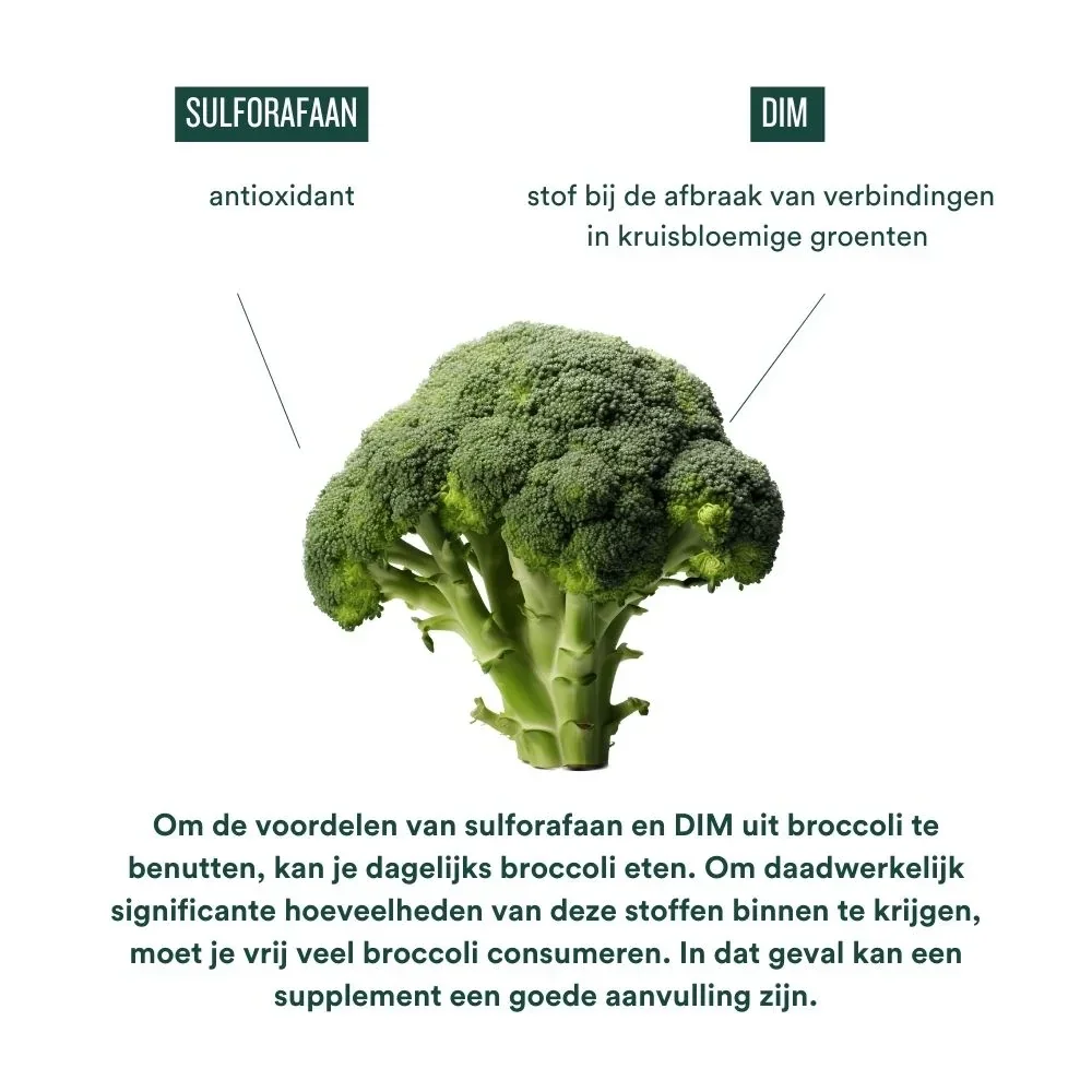 Broccoli-extract bevat natuurlijke verbindingen zoals sulforafaan en DIM (di-indolylmethaan), die worden onderzocht vanwege hun potentieel oestrogeenreceptoren te ondersteunen. Het gebruikte broccoli-extract is een natuurlijke bron van deze bio-actieve stoffen. Je kan het combineren met de Detox Boost, Fat Burner en/of Balance² Me waardoor het ook een positieve invloed heeft op je hormoonmetabolisme. Balance² Me bevat vitamine B6 wat bijdraagt aan de regeling van de hormonale activiteit.
